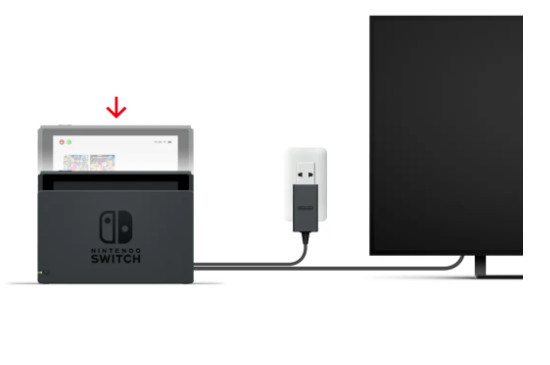 6、最后将主机放置在switch基座里面,对准插孔,就可以连接至电视机了。
